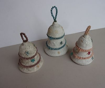 3 ANTIQUE German SPUN COTTON BELLS CHRISTMAS ORNAMENTS
