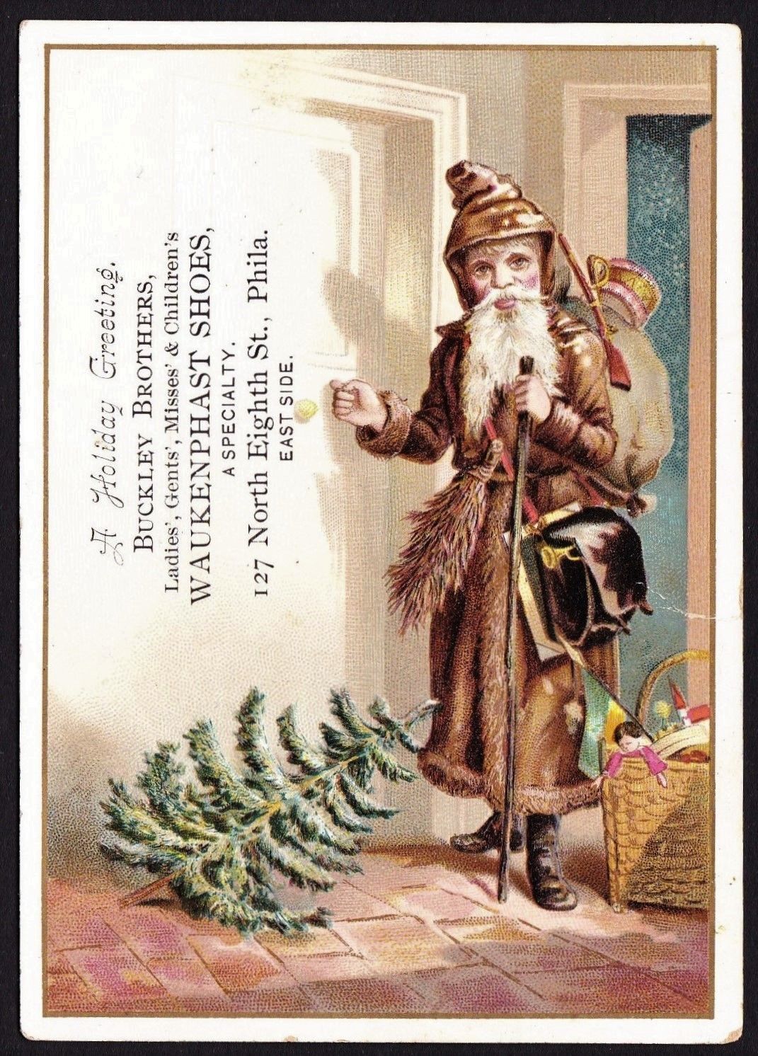 Santa Claus antique Victorian trade card - Buckley Brothers Waukenphast Shoes