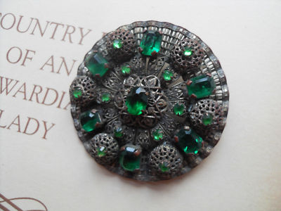 Title (ebay affiliate link): Antique Victorian filligree emerald rhinestone brooch