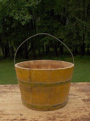 Title (ebay affiliate link): Primitive Farm House Barn Old Wood Grain Bucket Old Mustard Paint