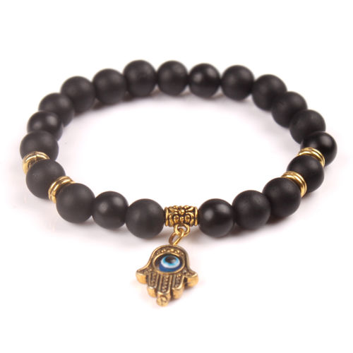 Title (ebay affiliate link): 8MM Antique Gold Hamsa Hand Blue Evil Eye Matte Agate Stone Bracelet 7.5''''L