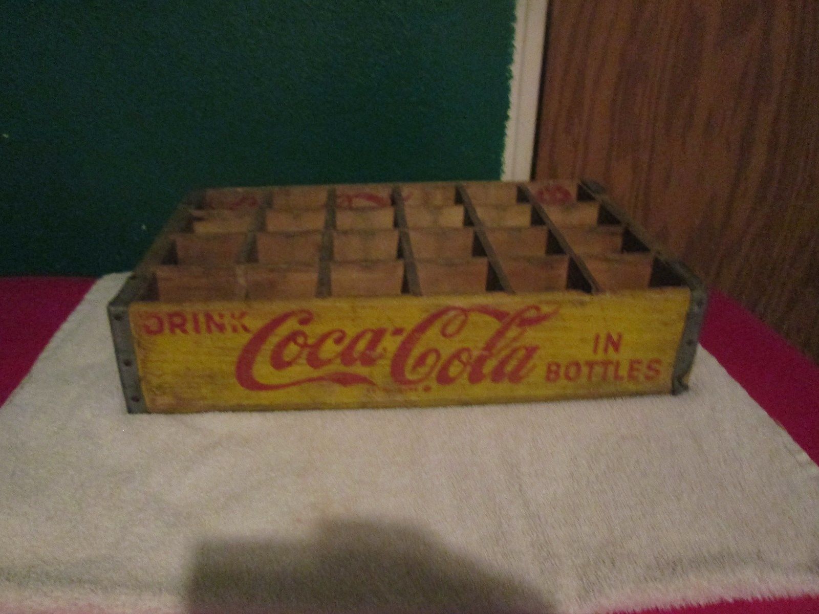 Title (ebay affiliate link): vtg Coca - Cola Soda Bottle Wooden Carrier 1969 Yellow Red Letters Dallas Texas