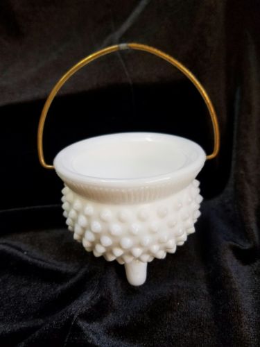 Title (ebay affiliate link): Vintage White milk glass Hobnail 3 footed pot with wire handle