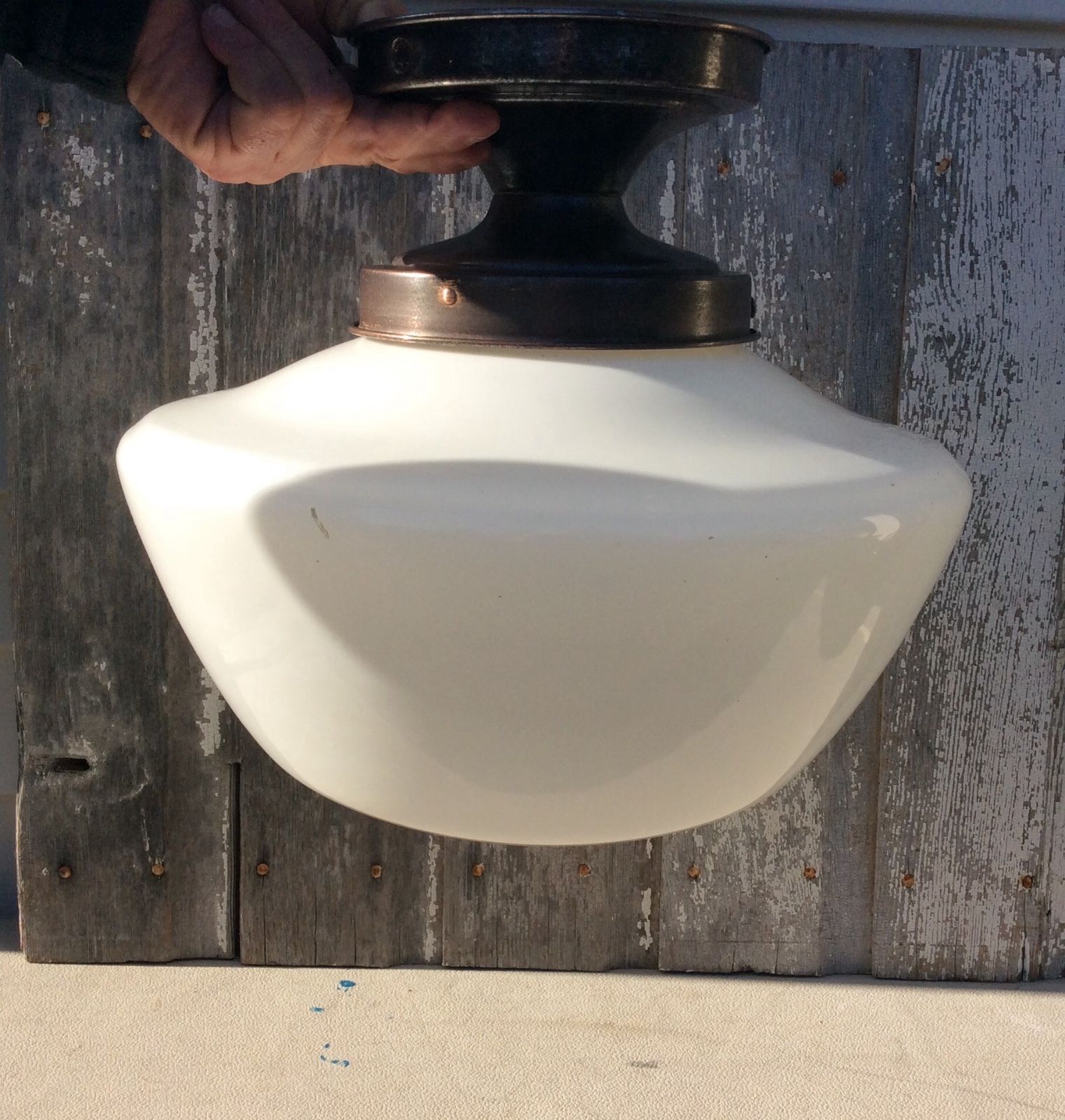Title (ebay affiliate link): Large 14" Antique Vtg School House Milk Glass Globe Ceiling Light Fixture