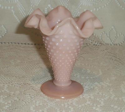 Fenton Pink Milk Glass Hobnail 3 3/4" Trumpet Vase