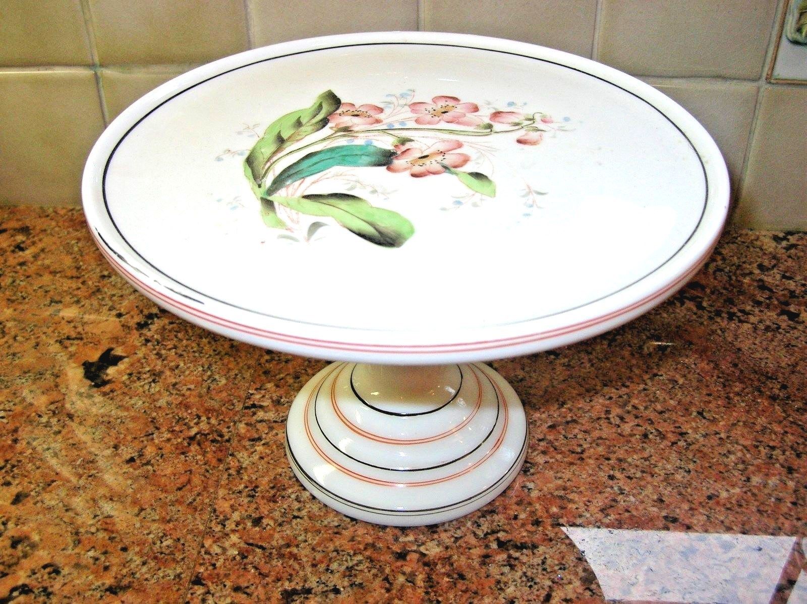 Vintage Art Deco Hand Painted White Milk Glass Cake Stand
