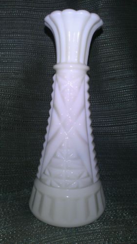 Title (ebay affiliate link): Vintage Estate Diamond Cut White Milk Glass Delicate Bud Vase Made in U.S.A. euc
