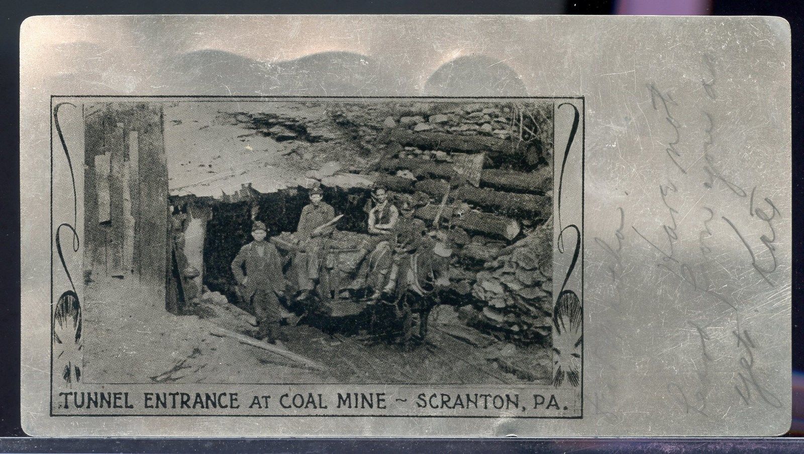 Title (ebay affiliate link): POSTCARD COAL MINING MINE MADE OF METAL MINERS AT TUNNEL ENTRANCE SCRANTON PA