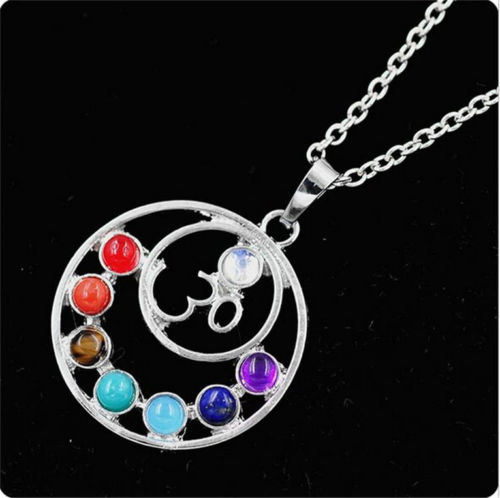 Title (ebay affiliate link): Seven Chakra Antique Silver Alloy 7 Gemstones Pendant with Necklace Jewelry XX24