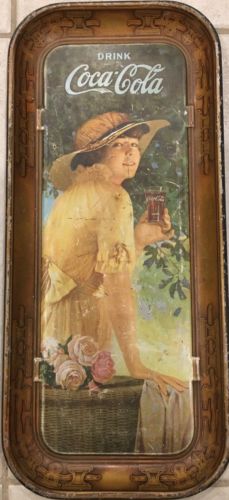 Title (ebay affiliate link): Antique Original 1916 "ELAINE" Coca-Cola Serving Tray Lithograph Sign