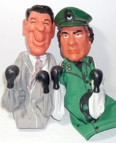 Title (ebay affiliate link): VINTAGE 1980''S RONALD REAGAN & MUAMMAR GADDAFI BOXING PUNCHING PUPPETS