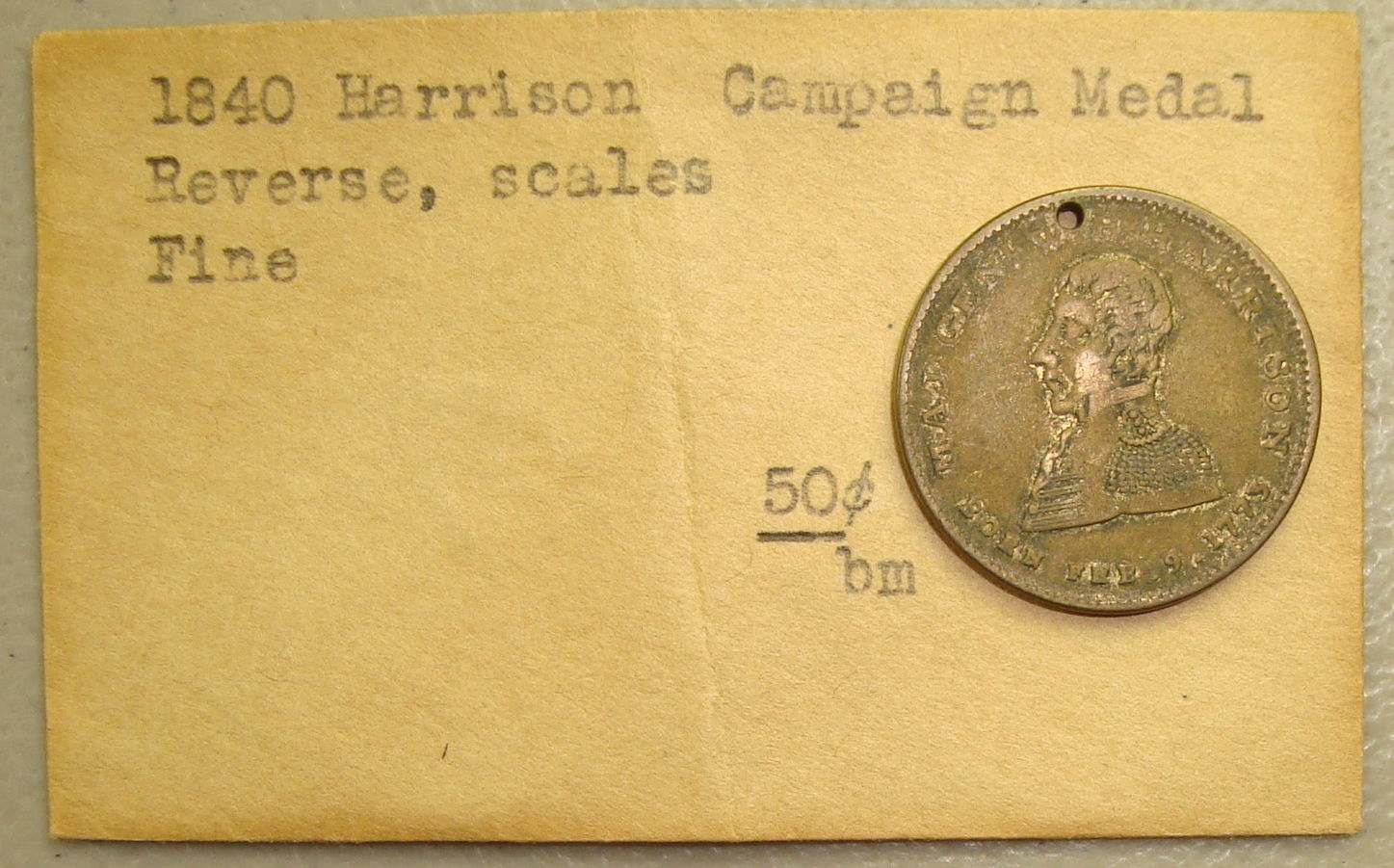 Title (ebay affiliate link): 1840 William Henry Harrison Dewitt 1840-46 Brass Campaign Token Medal