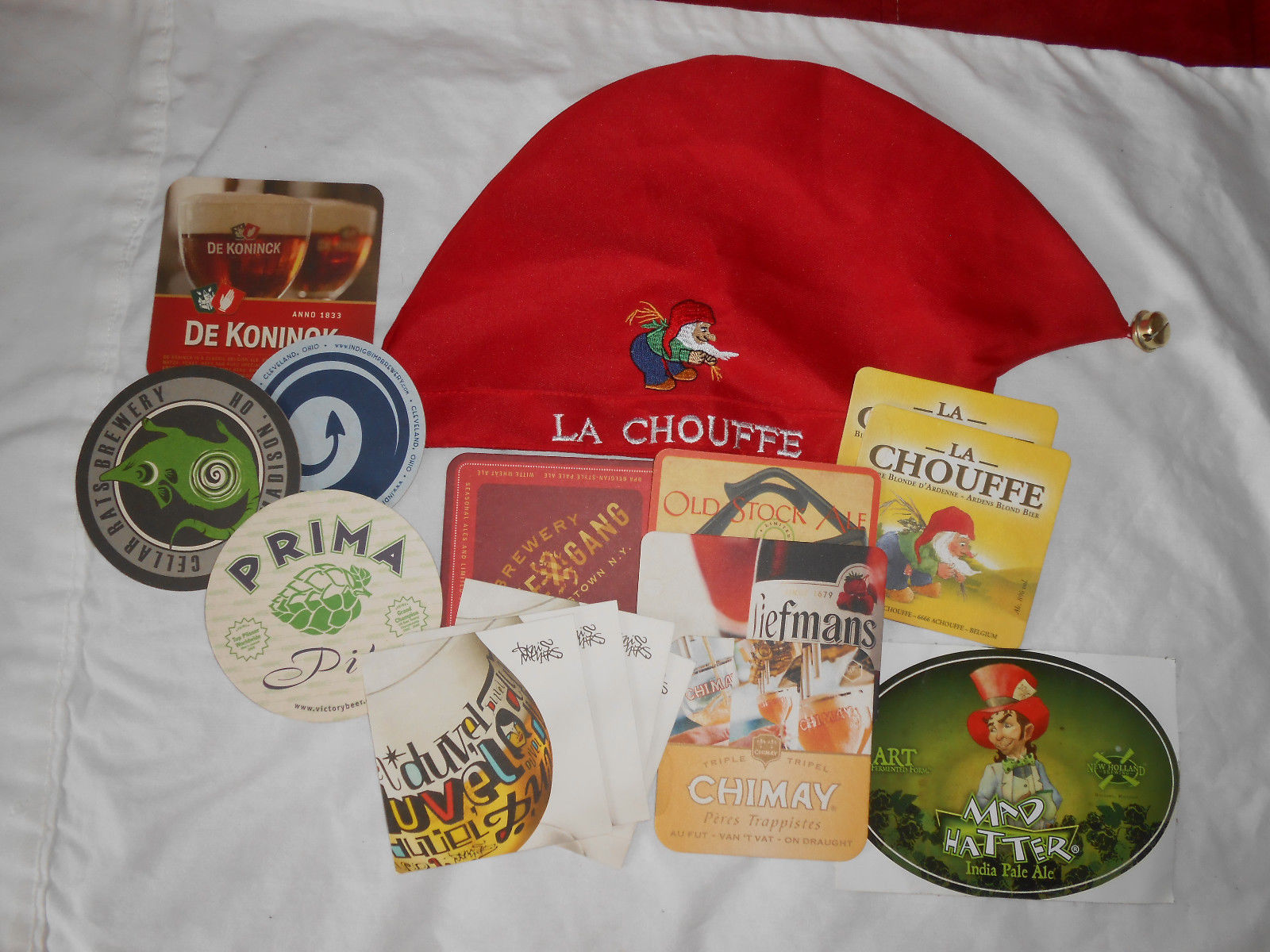 Title (ebay affiliate link): Crafted Micro Beer La Chouffe Hat, Mad Hatter India Pale Ale Sticker & Coasters