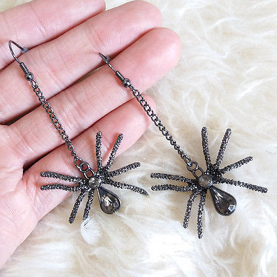 Title (ebay affiliate link): NEW Antique-Black Color Spider Charm Chains Holloween Dangle Drop Hook Earrings