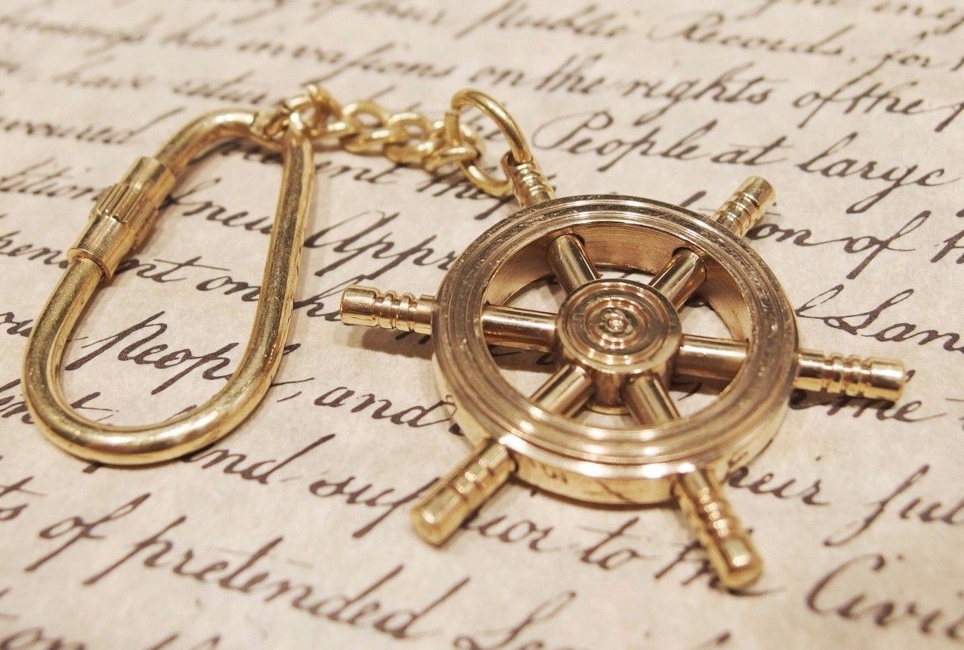 Title (ebay affiliate link): Vintage Antique Style Brass Nautical Sailing Boat Ships Wheel Keychain Gift