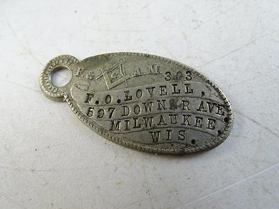 Antique Masonic Mason Keychain Tag Lost & Found Milwaukee WI Vintage Lodge Old