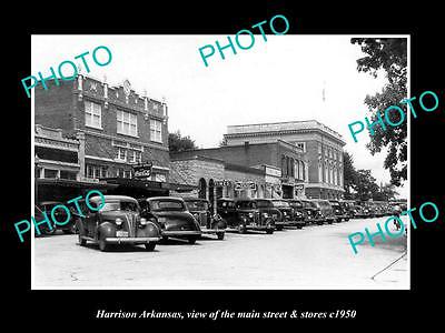 OLD LARGE HISTORIC PHOTO OF HARRISON ARKANSAS, THE MAIN STREET & STORES c1950