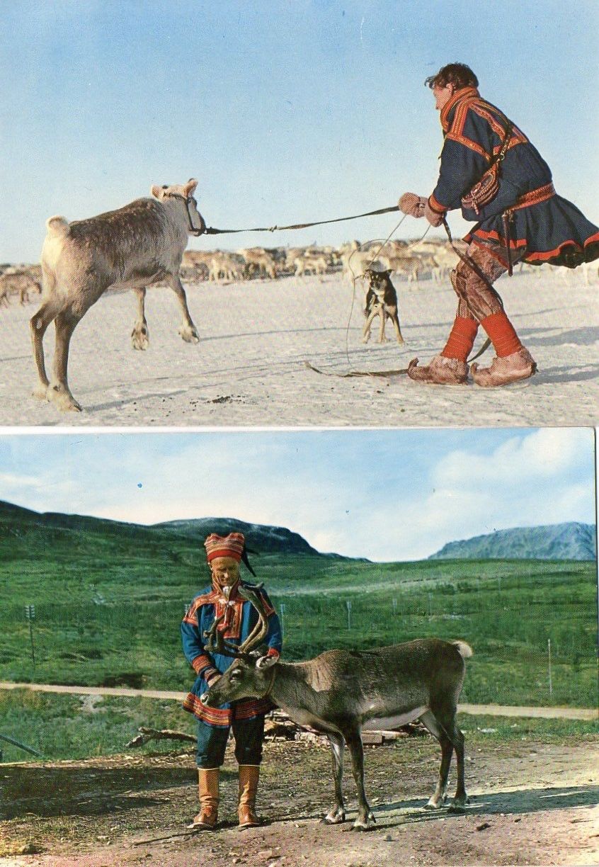 2 postcards of REINDEER & LAPP PEOPLE NORWAY