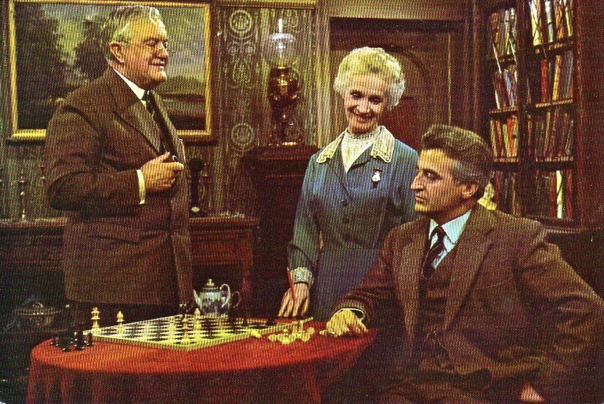 Title (ebay affiliate link): VINTAGE postcard of CHARACTERS FROM DOCTOR FINLAY''S CASEBOOK tv programme chess