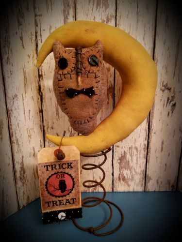 Title (ebay affiliate link): Primitive Halloween Owl on a Moon Make-Do~*~Rusty Spring~*~Doll~*