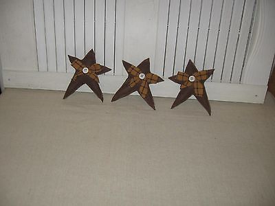 Handmade Primitive Fabric Bowl Fillers Ornies Brown Stars Set of 3