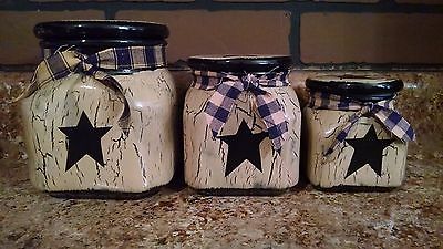 Title (ebay affiliate link): Primitive Tan & Black Crackled 3 piece Canister Set Country Decor