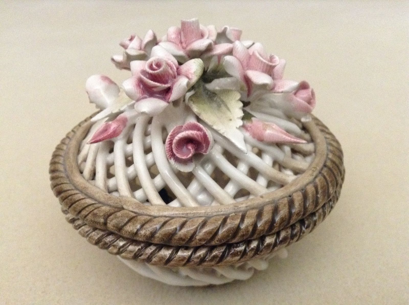 Title (ebay affiliate link): Beautiful Vintage Capodimonte Porcelain Floral Basket Trinket Box made in Italy