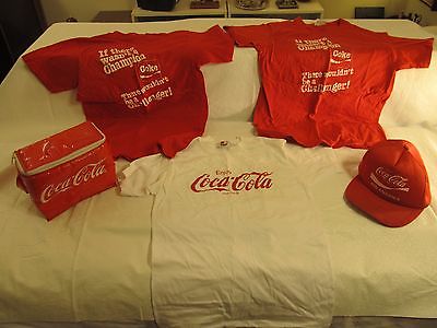 Coca-Cola Lot of 5 Great collectibles 3 Shirts 1 Trucker Hat 1 Lunch Pack