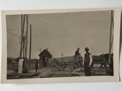 vintage postcard, Winnipeg, Main street railway crossing, flag man, real photo,