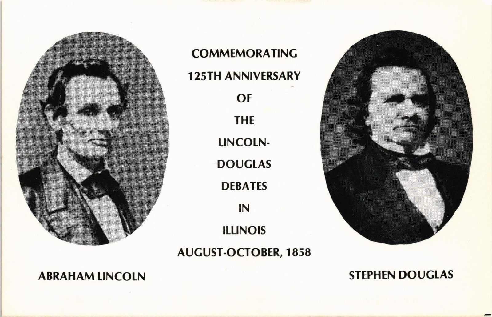 Title (ebay affiliate link): DR JIM STAMPS US POSTCARD 125 YEARS LINCOLN DOUGLAS DEBATED ILLINOIS 1983