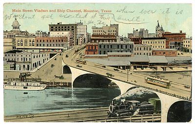 Title (ebay affiliate link): Postcard - Houston Texas Main Street Viaduct & Ship Channel & Train - C. 1910