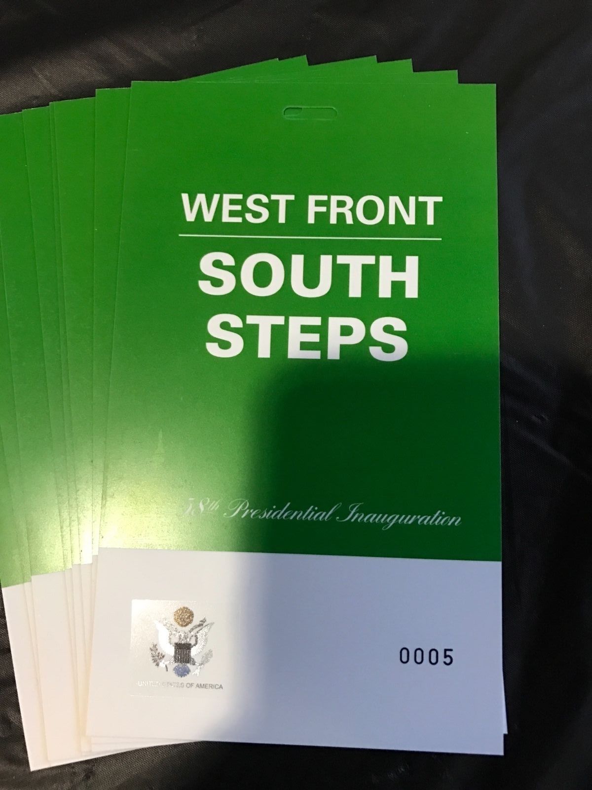 Title (ebay affiliate link): Donald Trump Inauguration GREEN SOUTH STEPS MEDIA CREDENTIAL w/OFFICIAL HOLOGRAM
