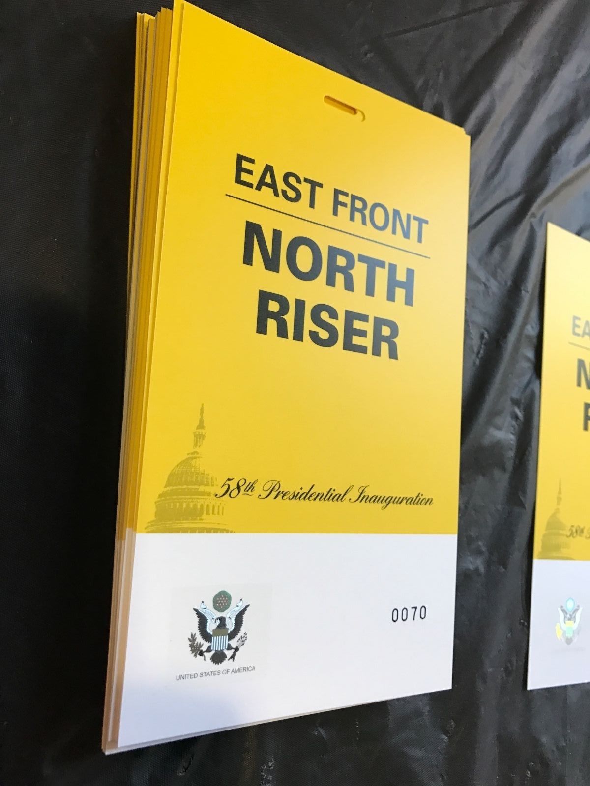 Title (ebay affiliate link): Donald Trump Inauguration YELLOW North Riser MEDIA CREDENTIAL /OFFICIAL HOLOGRAM