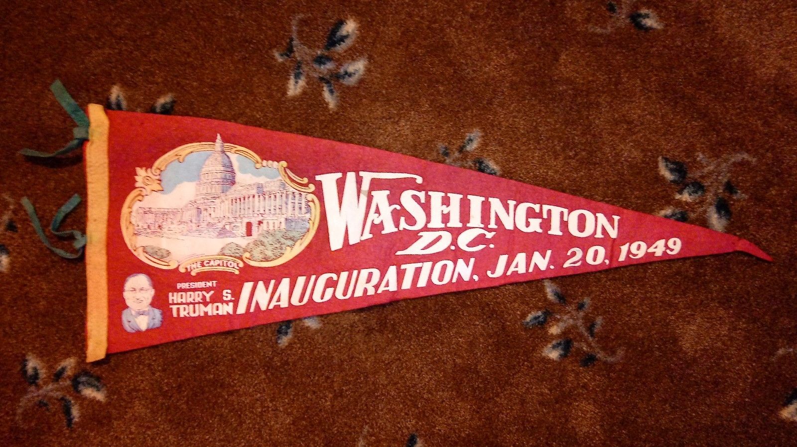 red pennant with truman capitol and date