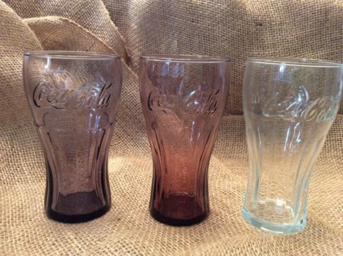 Title (ebay affiliate link): Set of (3) McDonalds COCA COLA Purple & Clear 16oz. Drinking Glasses 6" Tall