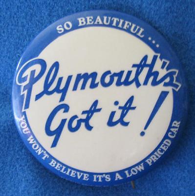 1930''s Vintage Plymouth Automobile Large Pinback in Blue