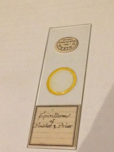 Antique Microscope Slide Baker Spirillum of Finkler & Prior Victorian unusual