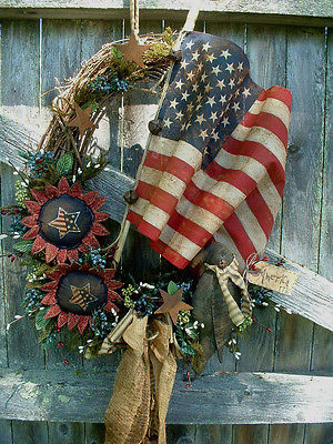 Title (ebay affiliate link): PRIMITIVE 18" OVAL WREATH~AMERICANA~SUNFLOWERS~CROW~AMERICAN FLAG~RUSTY STARS