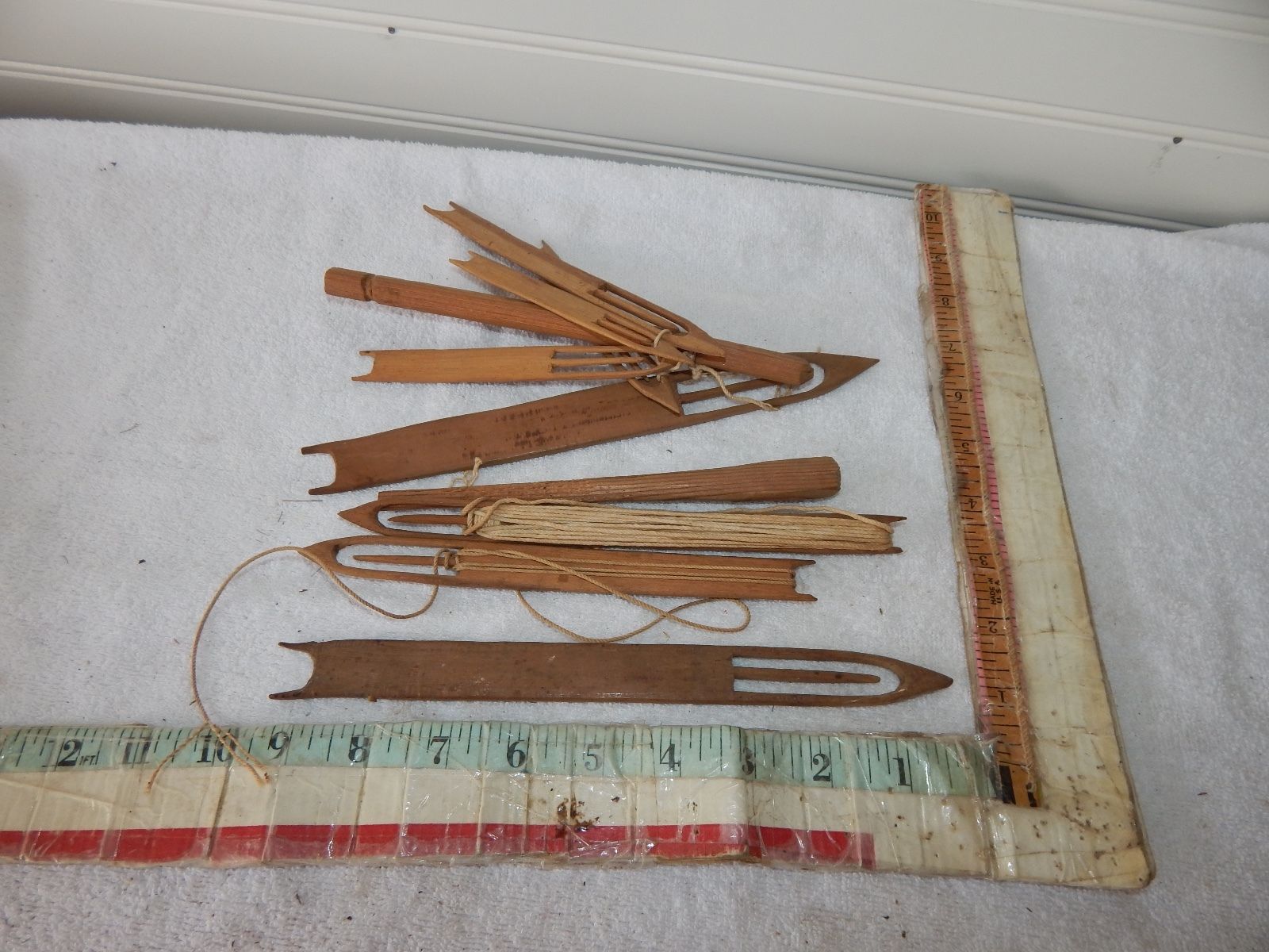 antique shuttle loom aafa primitive needle lot worn weaving wooden wood