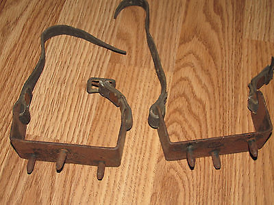 Barn Find Antique METAL Ice/Snow Shoes Cleats with Leather Straps Spikes Cast?