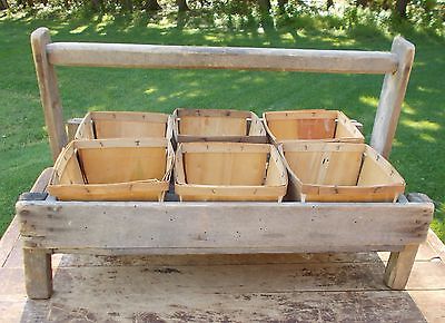 Antique Primitive Farm Barn Old Wood Berry Tote Box & 6 Wood Berry Baskets