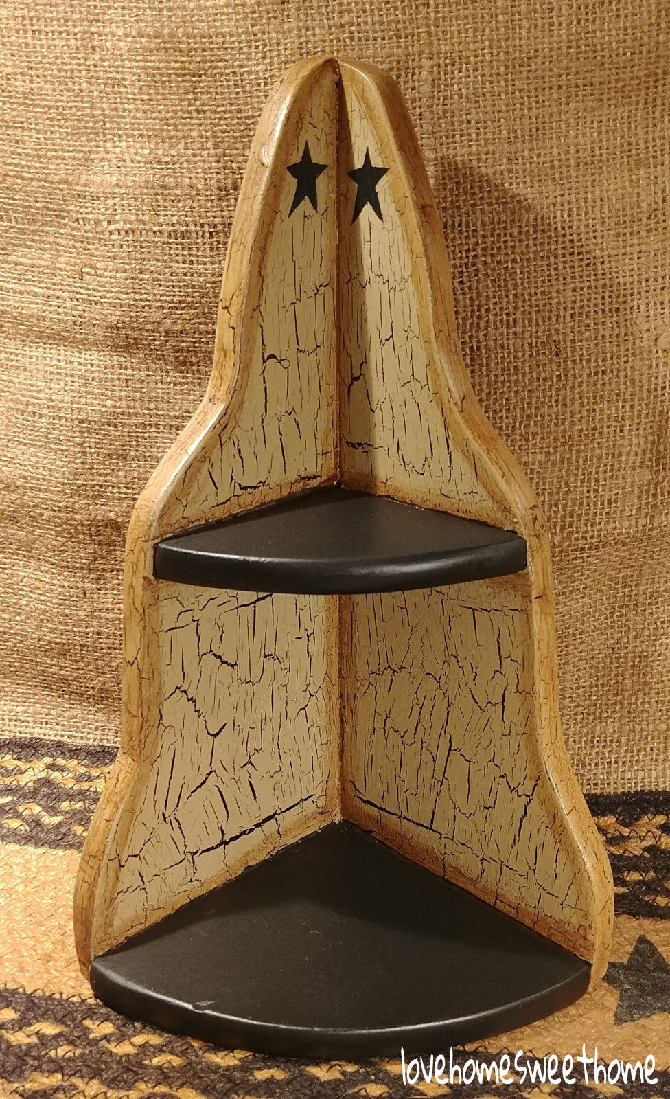 Title (ebay affiliate link): Primitive Crackle Tan & Black Star Wood Corner Shelf ~ Country Decor