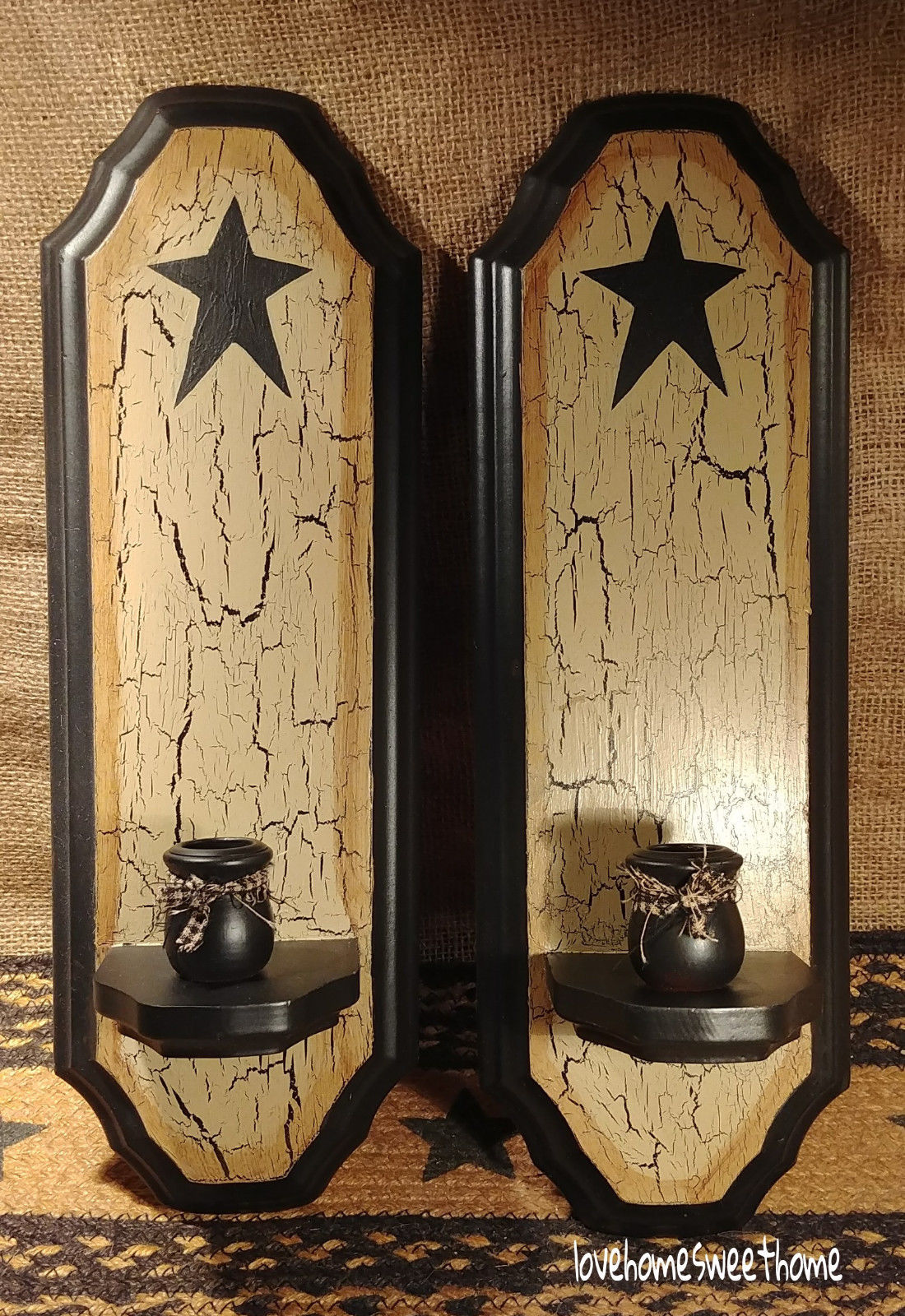 Title (ebay affiliate link): Primitive Crackle Tan & Black Star Wood Sconce Pair ~ Country Decor