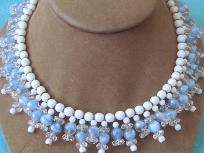 Vintage Milkglass & Blue Glass Choker Necklace Japan