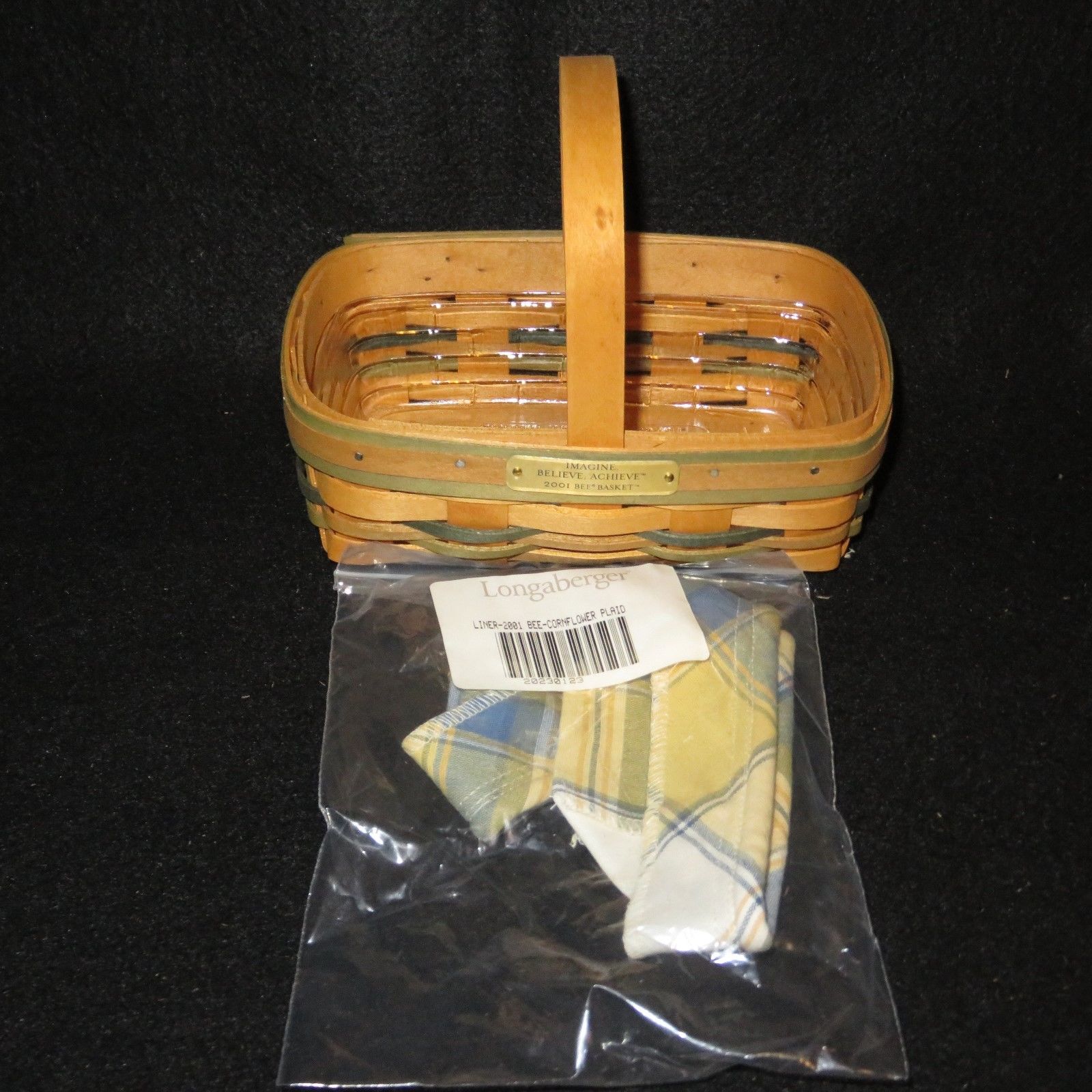 Longaberger 2001 BEE Basket w/Liner Protector Imagine, Believe, Achieve ***EUC**