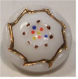 FUN 1940'S WHITE MILK GLASS BUTTON w/POLKA-DOTS & GOLD