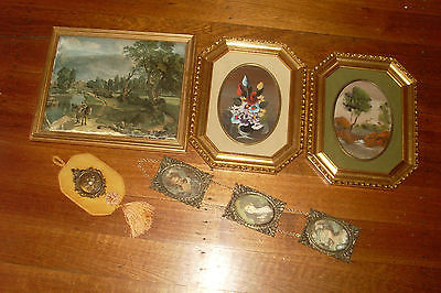 Title (ebay affiliate link): LOT VINTAGE RETRO KITSCH ORNATE ITALIAN SILK PRINTS & PAINTINGS/WALL HANGINGS