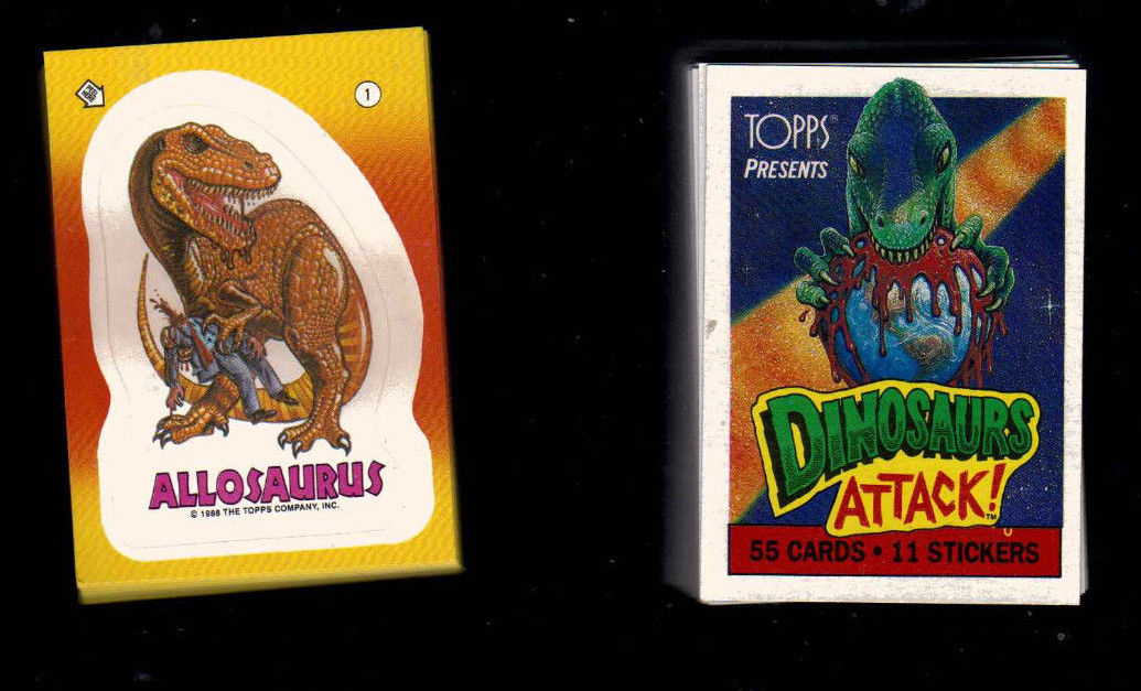 DINOSAURS ATTACK! 1988 TOPPS COMPLETE BASE 55 CARD & STICKER SET OF 11