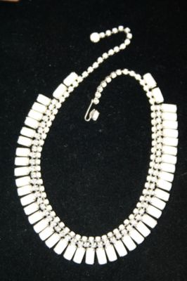 ELEGANT VINTAGE CLEAR RHINESTONE & MILK GLASS NECKLACE
