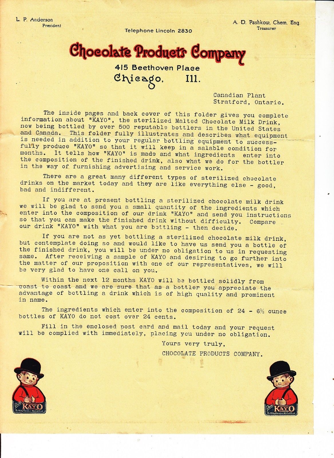 CHOCOLATE PRODUCTS COMPANY BROCHURE CHICAGO ILL. DATED IN THE 1920s FOUR PAGES